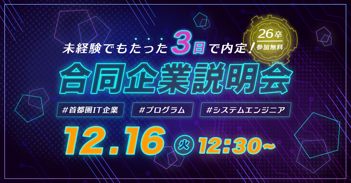 - 12/09 【予告】26卒向け就活イベント開催のお知らせ